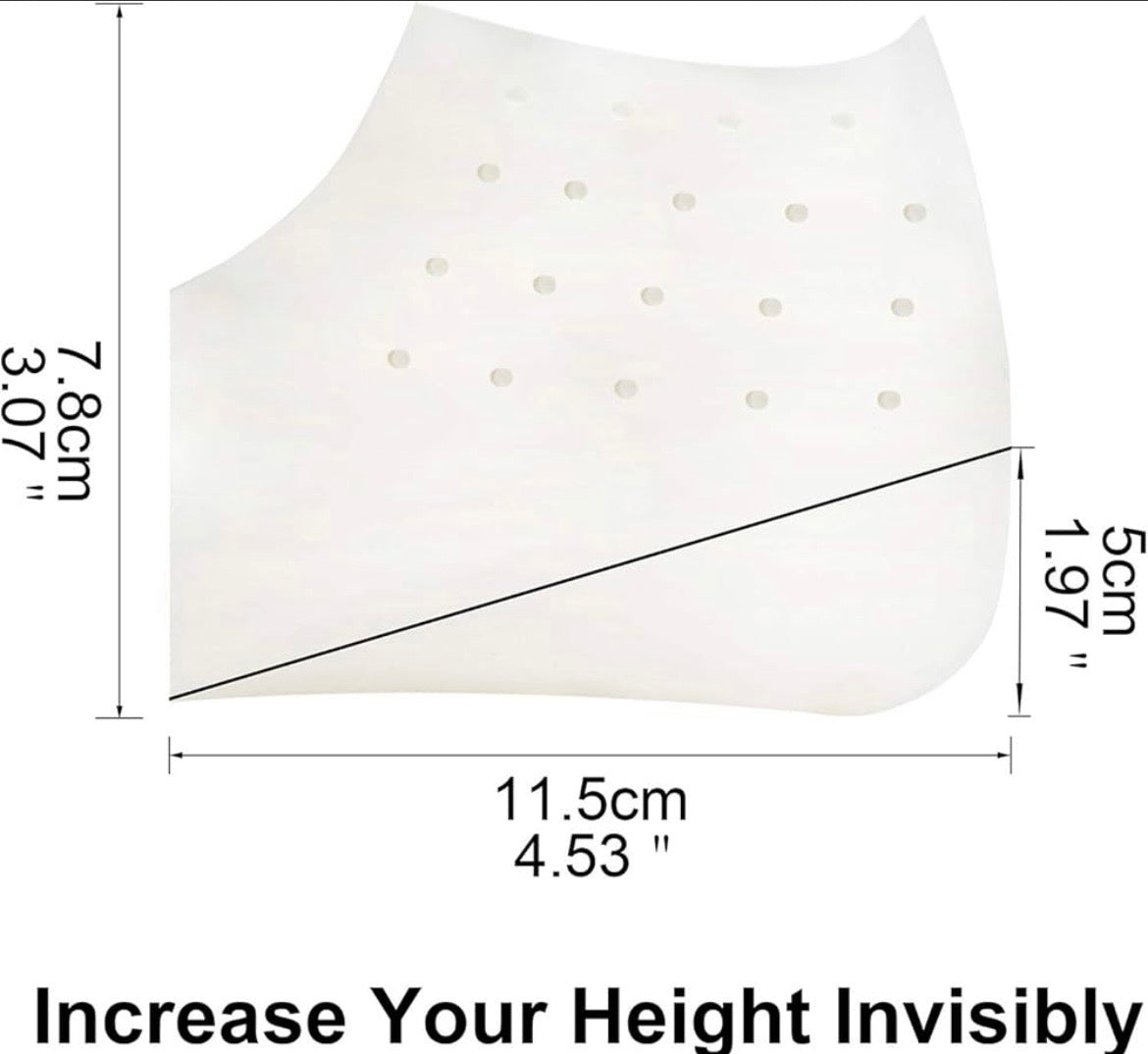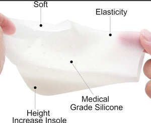 Crafted from soft silicone, these insoles not only add height but also alleviate discomfort, making them perfect for long hours of wear—ideal for daily use by anyone on their feet.